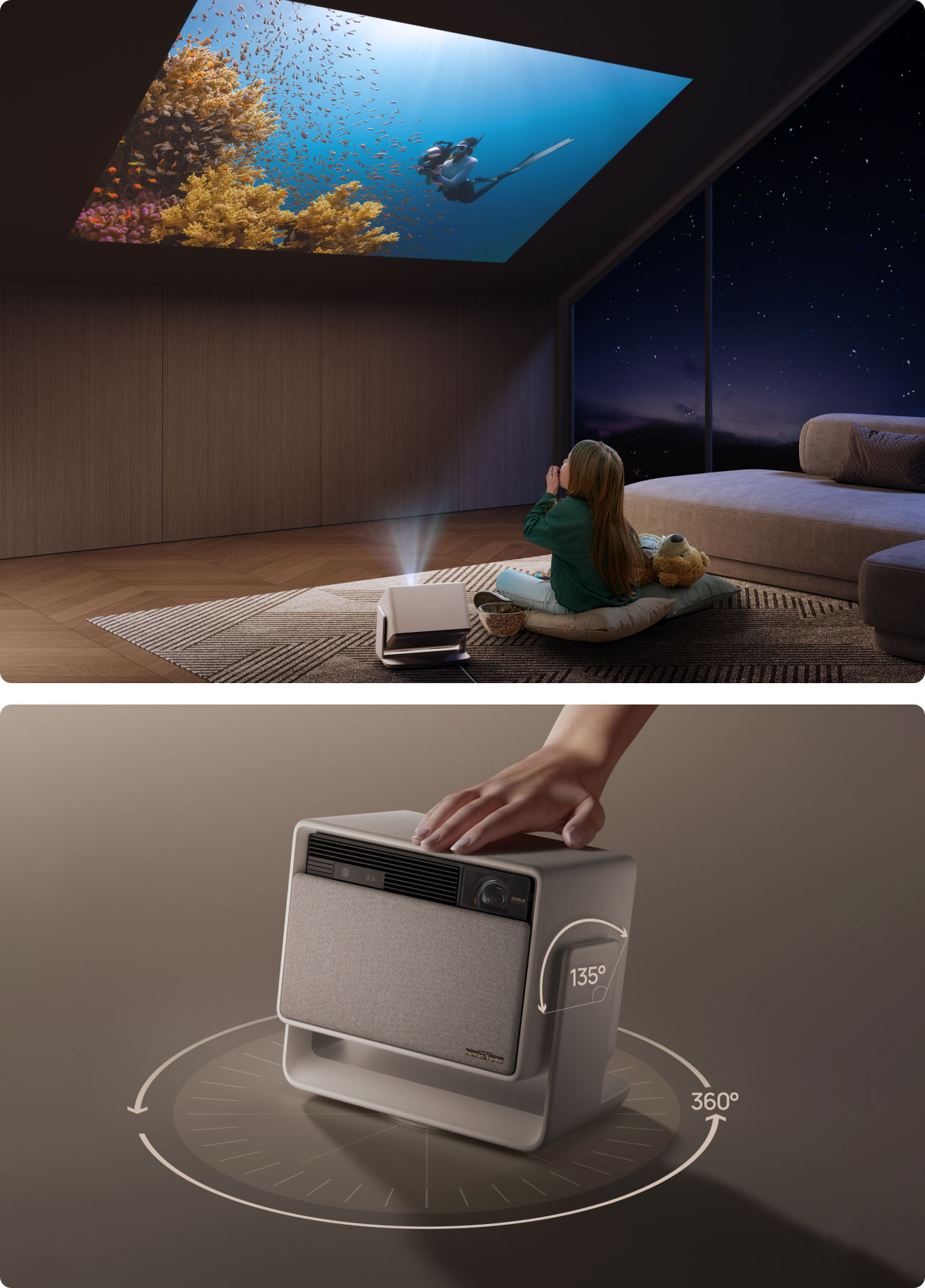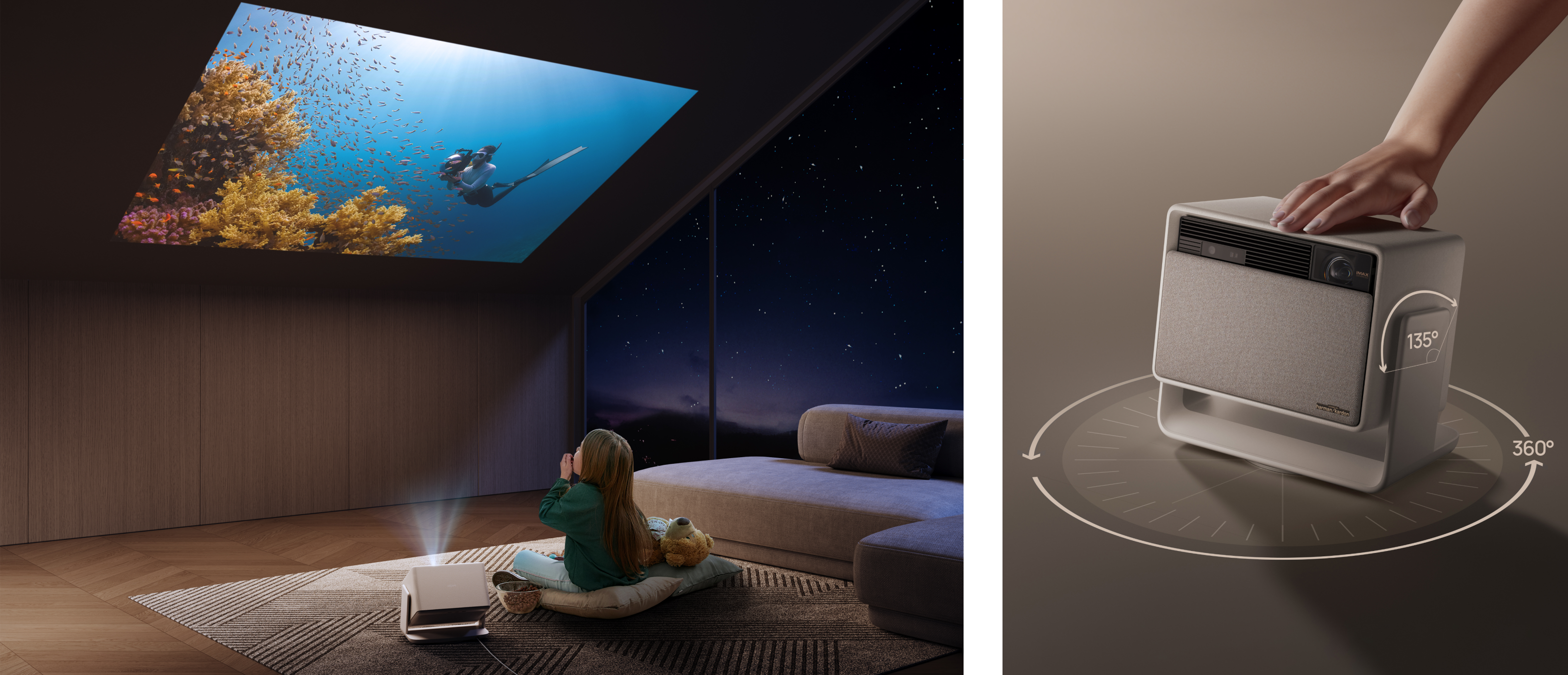 - Equipped with a flexible built-in stand: HORIZON S Max eliminates the need for additional brackets or mounts. Easily adjust the projection angle to your liking, even when projecting onto the ceiling.