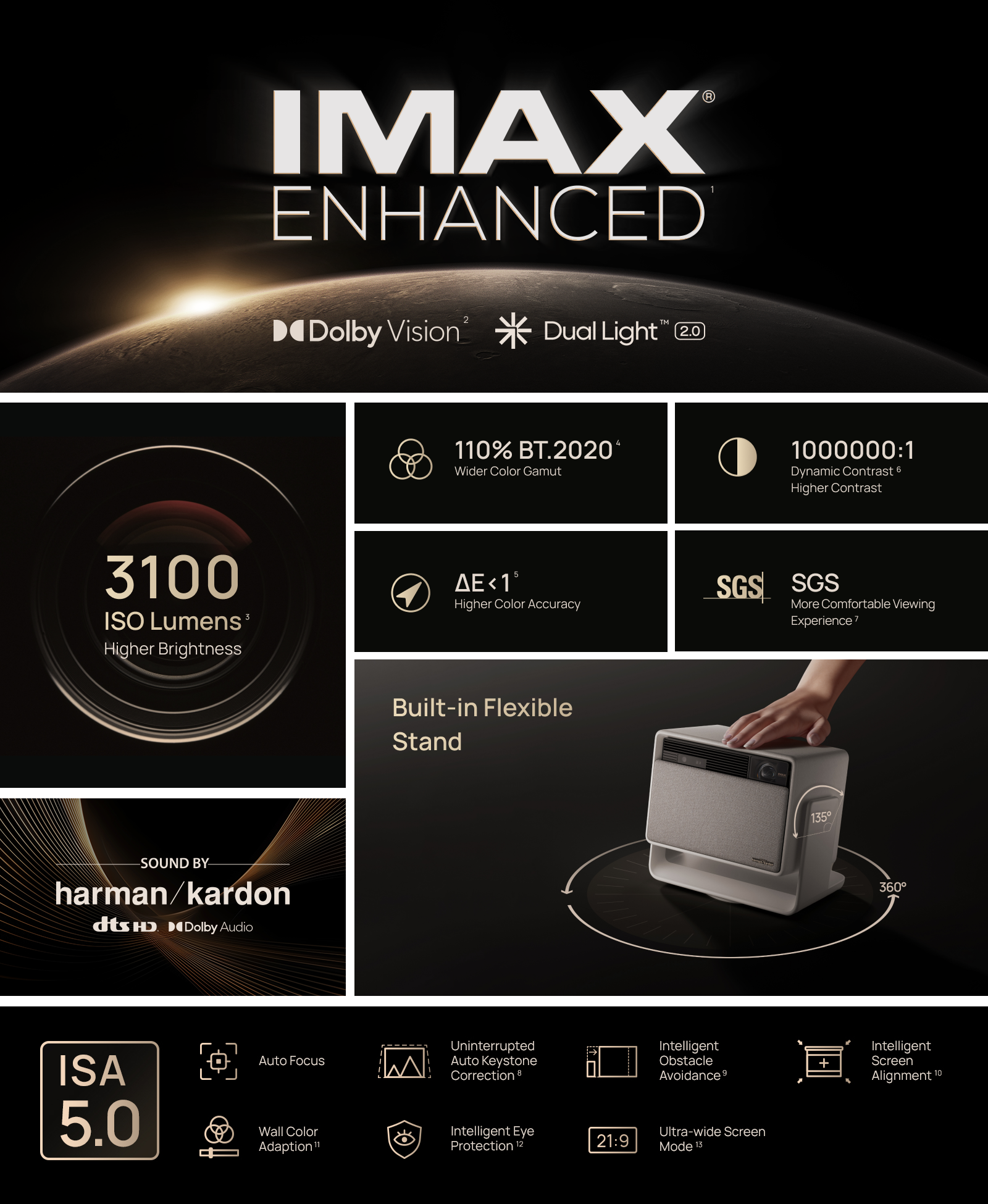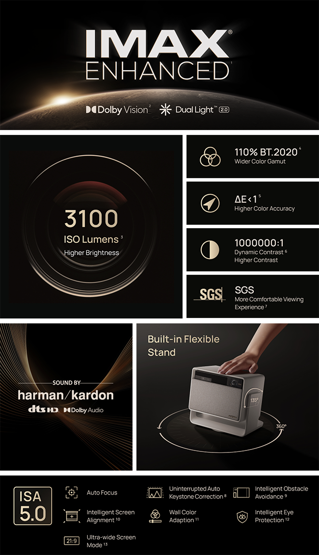 - IMAX Enhanced & Dolby Vision Certified: With IMAX Enhanced, users can enjoy a true IMAX theater experience on a stunning big screen. Dolby Vision provides incredibly vivid effects, making your viewing experience even more immersive.