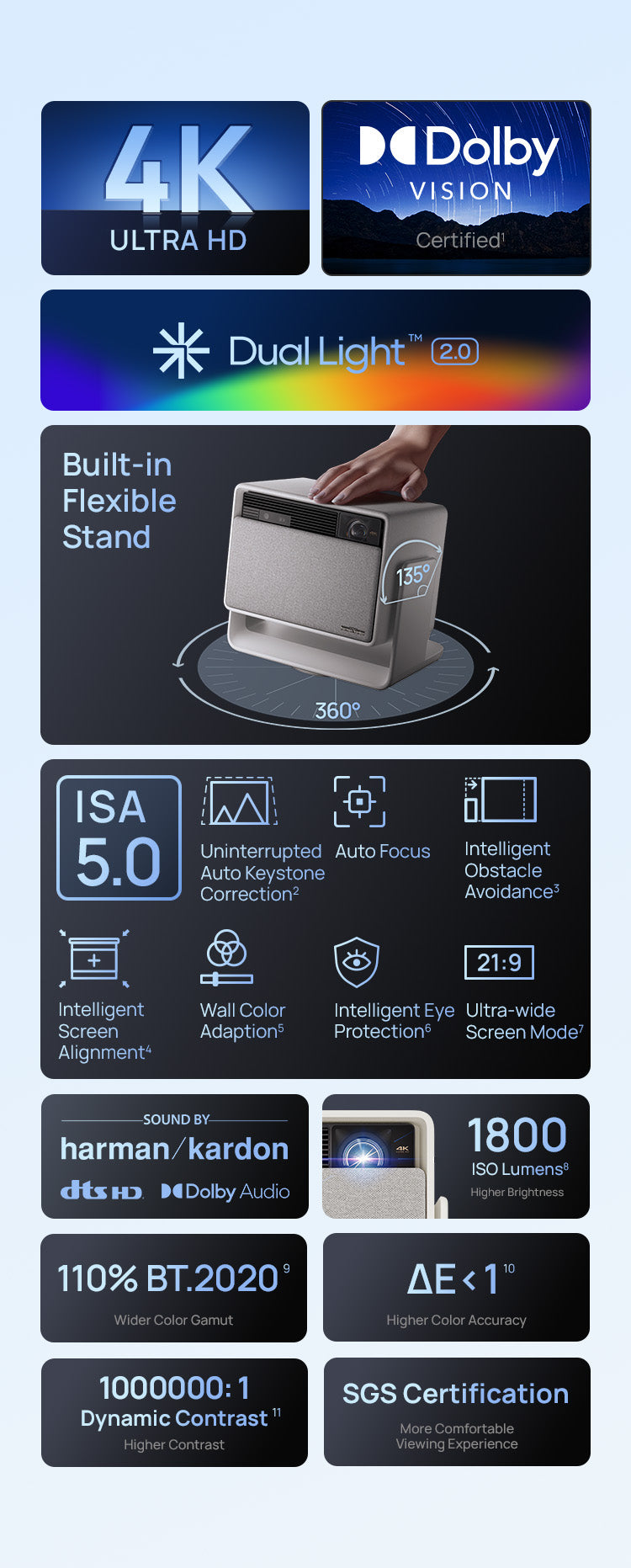 - Dolby Vision Certified: Transform your living space into a 4K giant theater with Dolby Vision. Experience leading cinematic quality right in the comfort of your home.